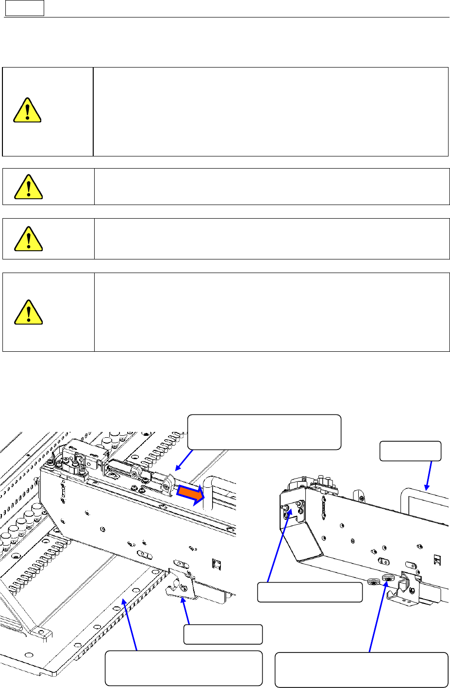 3) 向身边拉紧固把、保持不动,将装置向前方滑动,直至装置前端的基准销插入固定板。向身