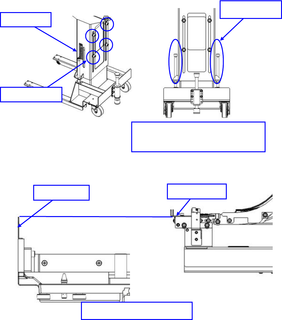 松开 4 处 M10 螺丝,旋转侧面的 M12 螺丝调整高度。