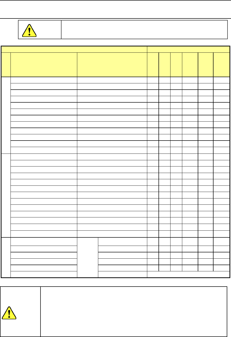 操作手册 3-2 3-2 各部分的检查 1) 在压力表上确认 0.5 MPa。 3 ) 若是排水管连接的瓶内存了 水、油,请倒干净。 2) 若压力值为 0.45MPa~0.55MPa 以外时, 请检查工厂内是否有空气泄漏,如果没 有异常,请按「调整方法」重新调整压力。 1)打开旋钮①。 2)向下拉“调节器旋钮②”,旋转旋钮,转将使用的空气压力调整为 0.5MPa。 1) 2) 检查项目 3-2-1 气压 实施频度 :每天 检查内容 确认…
