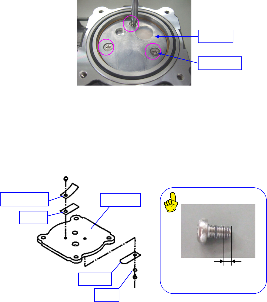 6) 放好垫片,使用 0.8N・m 的力,用涂抹了螺钉松动防止剂(Loctite242)的圆头螺钉(M3×5)