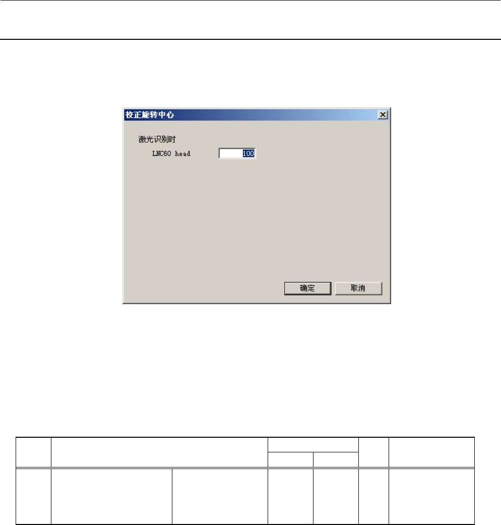 Rev. 1.0 机器控制参数 4-1-7 校正旋转中心 图 4-1-7 校正旋转中心 (1) 设定画面的显示方法 菜单∶ [ 输入 ]→[Head]→[ 校正旋转中心 ] 起动∶ [ 输入 ] 按钮 →[ 校正旋转中心 ] 标签 →[ 校正旋转中心值 ] 按钮 (2) 设定项目 输入范围 № 项目 最小值 最大值 单 位 备考 1 激光识别时校正吸嘴旋 转中心最大 (X 轴移动中 的 G 的旋转中心偏差校 正值 ) LNC60 Hea…