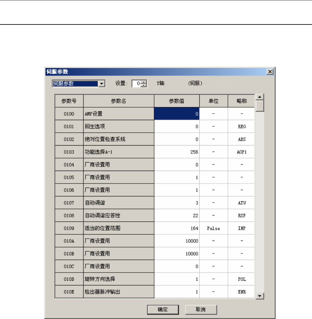 起动∶ [XY]按钮→[伺服参数]标签→[伺服参数]按钮