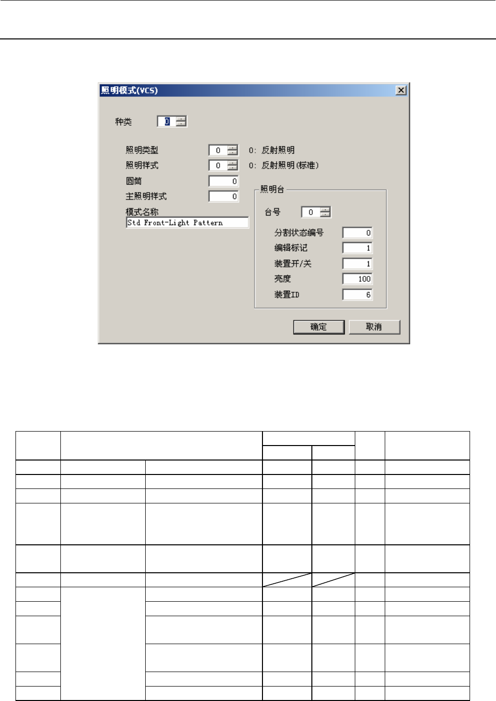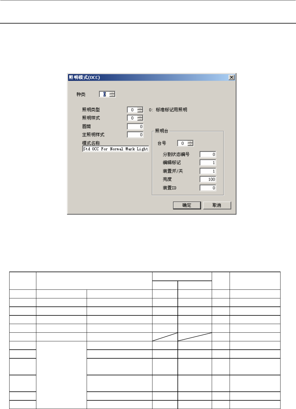 Rev. 1.0 机器控制参数 (3) 种类 № 区分 内 容 1 0 标准标记用照明 2 1 有护罩标记照明 3 2~63 预备 (4) 照明类型 № 区分 内 容 1 0 标准标记用照明 2 1 有护罩标记照明 3 255 插座 (5) 照明样式 № 区分 内 容 1 255 插座 (6) 装置 ID № 区分 内 容 1 0 垂直照明 2 1 角度照明 4-43