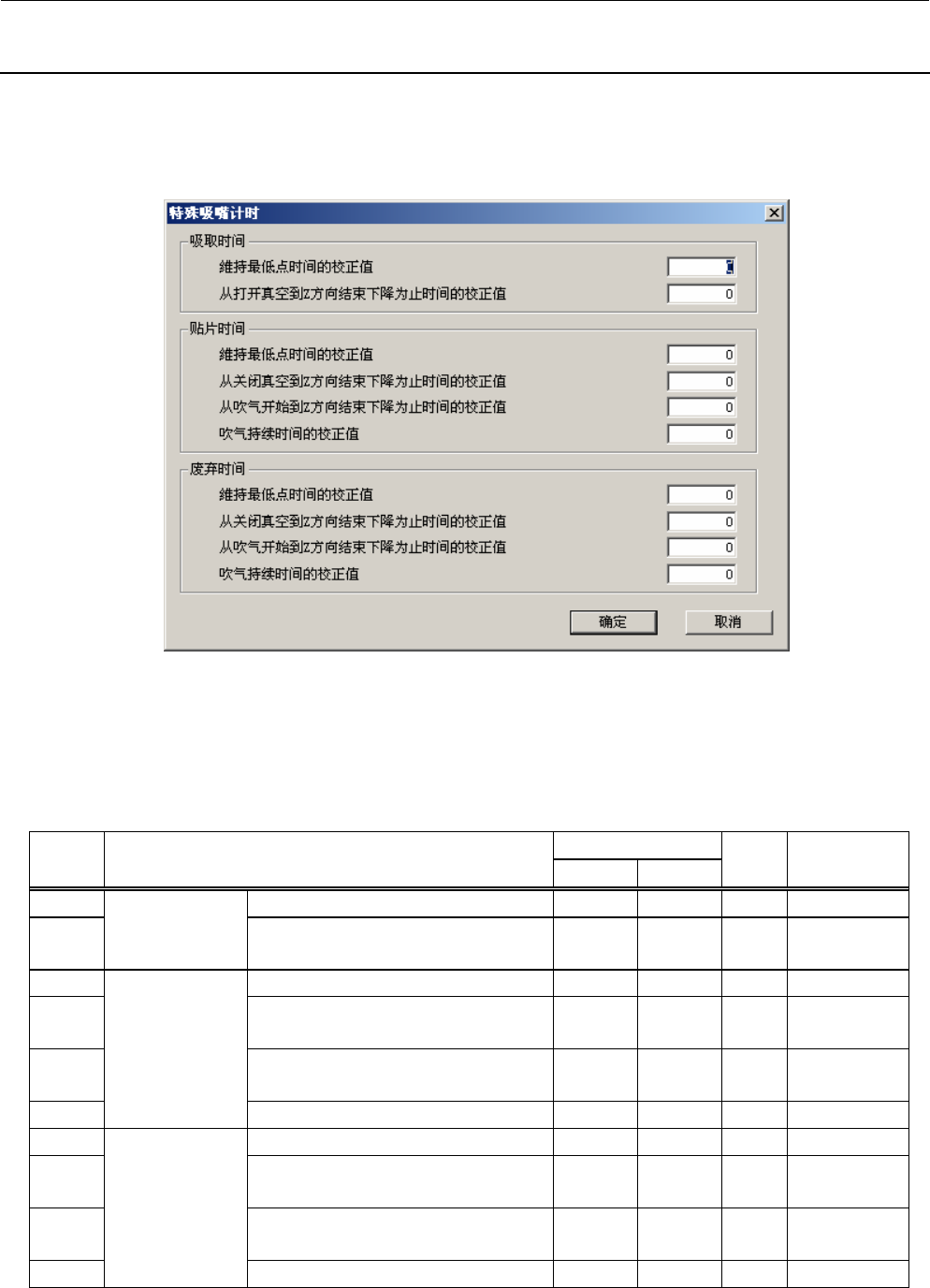 图 4-5-3 特殊吸嘴定时器修正值