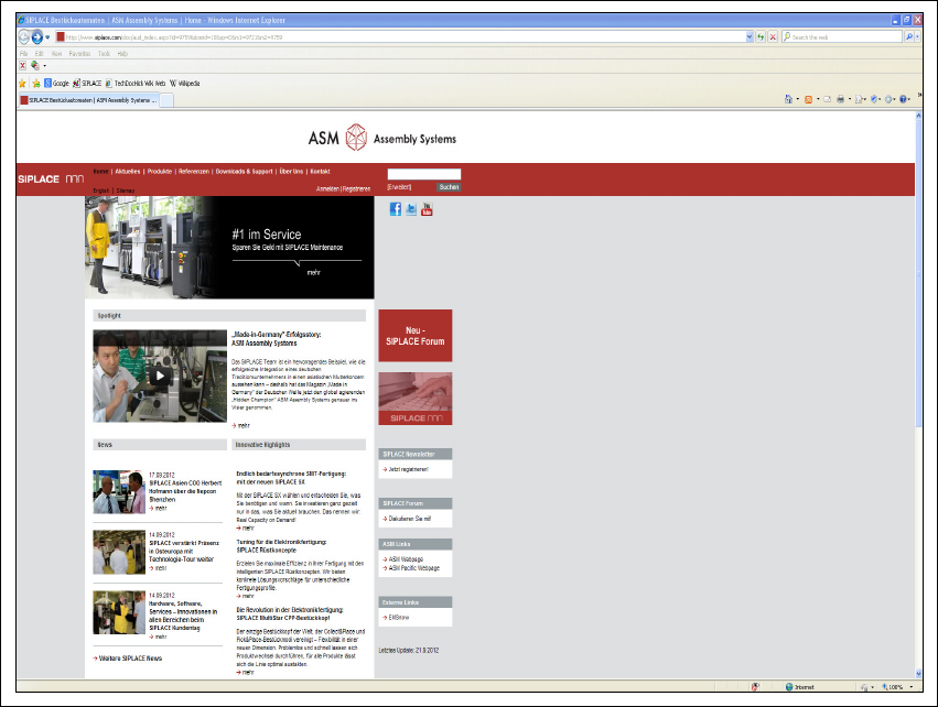 Wir sind auch im Internet vertreten. Unter der Adresse http://www.siplace.com können Sie sich in