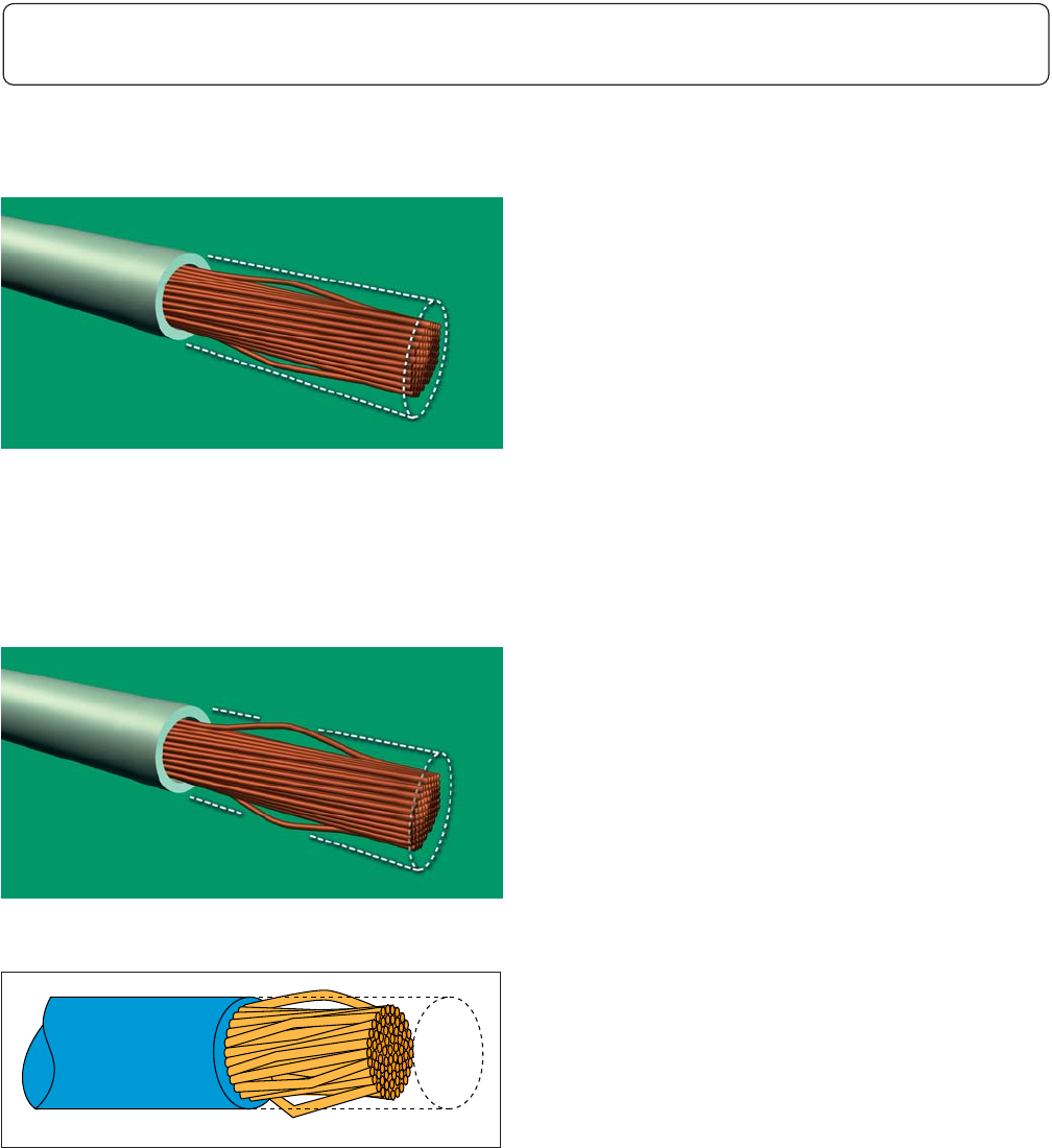 • 剥除绝缘皮时被拉直的股线重新拧回到原有