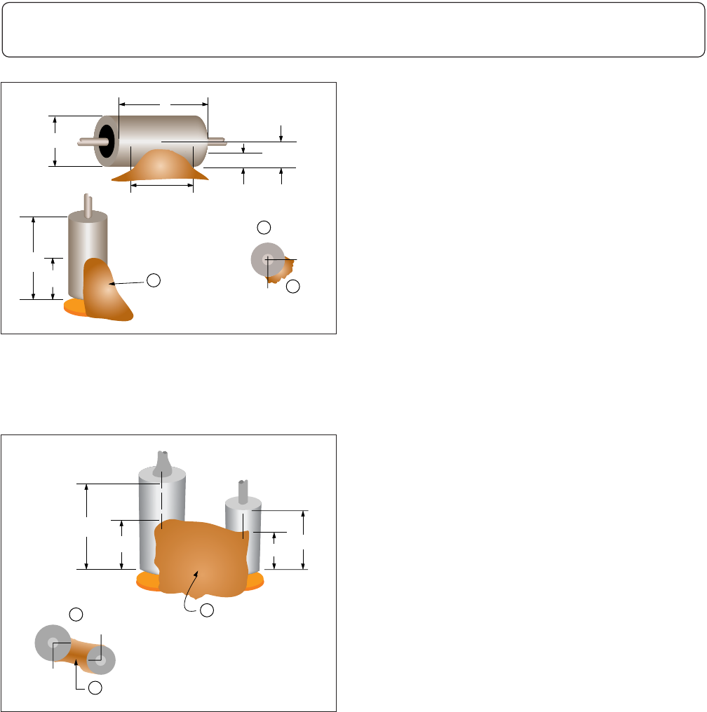 • 未加套管水平放置的元器件,粘接高度超过
