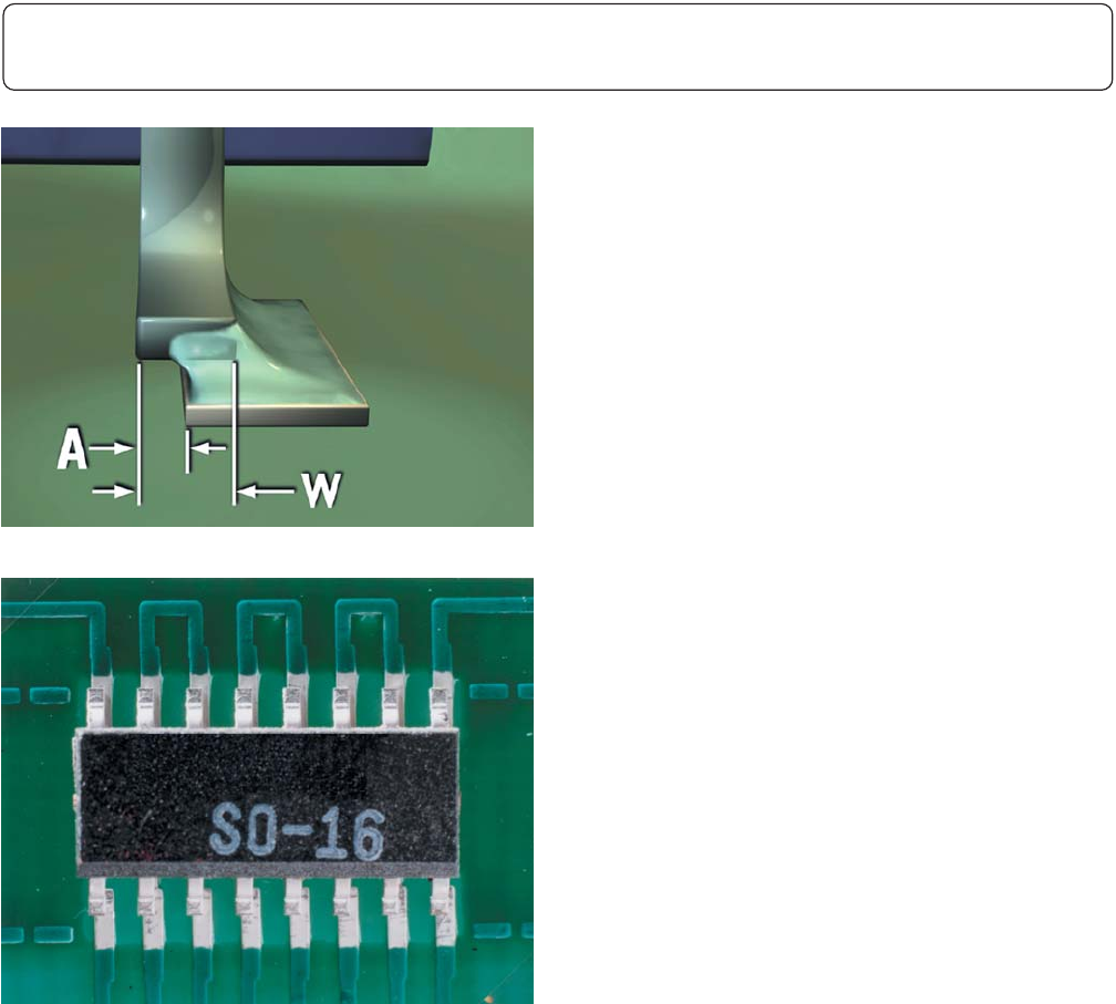 • 最大侧面偏移(A)大于引线宽度(W)的50%