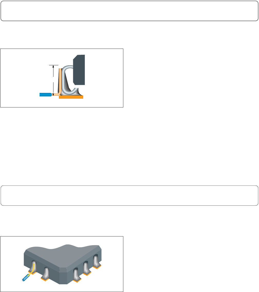 • 跳线长度和焊接润湿小于从焊盘边缘到引线