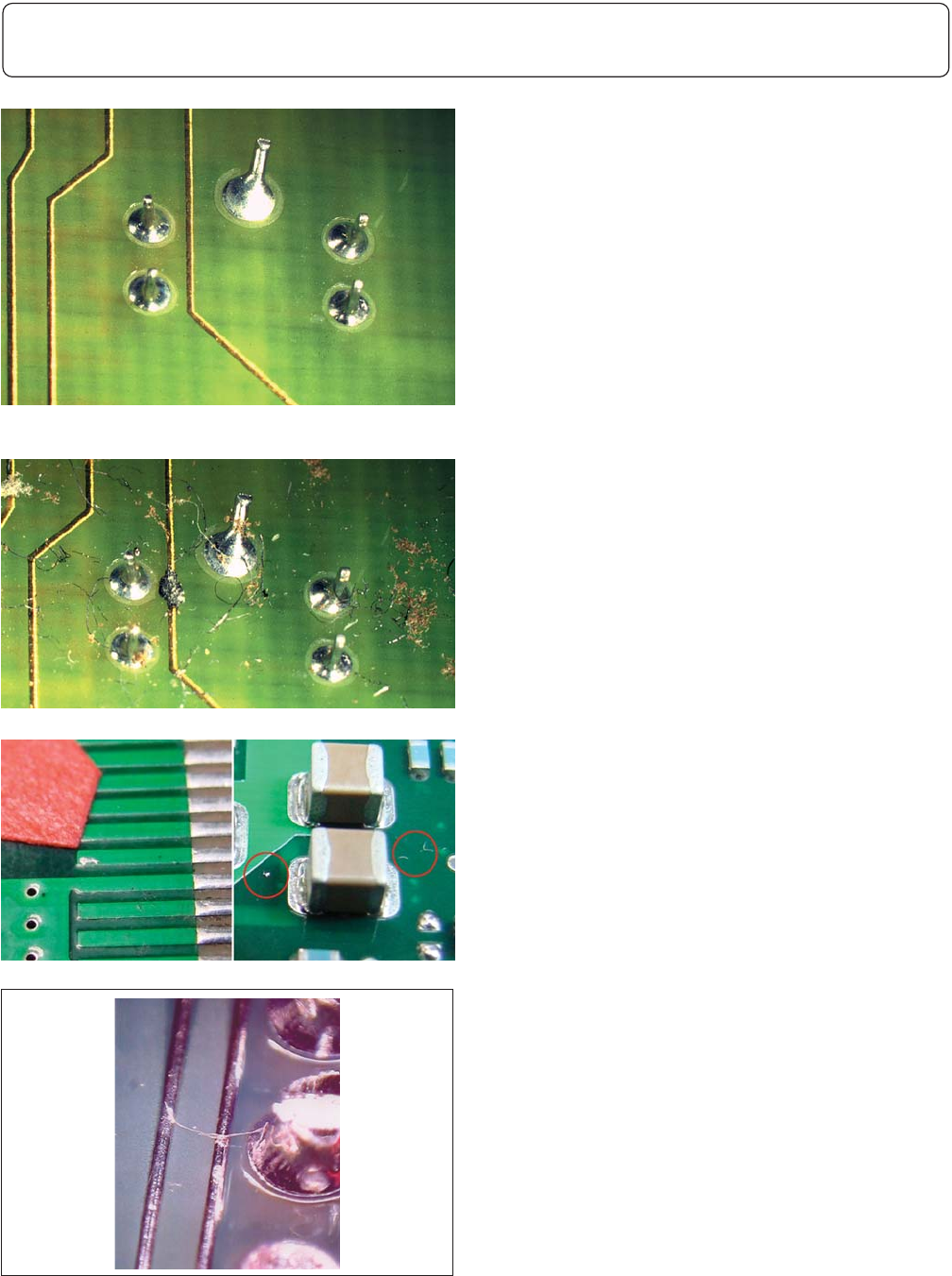 ⽬标 - 1,2,3级 • 无 可 见 残 留 物 。 缺 陷 - 1,2,3级 • PCB 表面有 白色残 留 物 。 • 焊 接 端 子上 或 周 围 有 白色残 留 物 。 • 金属 表面有 白色 结 晶 物 。 注 : 只 要所用 化学 成 分 产生的 残 留 物 已 经 通 过 鉴 定 并有文件 记 录 其 特 性 是 良 性 的, 来 自 于 免洗 或 其 他工 艺 的 白色残 留 物 是 可接受的, 见 10.6.4 节 …