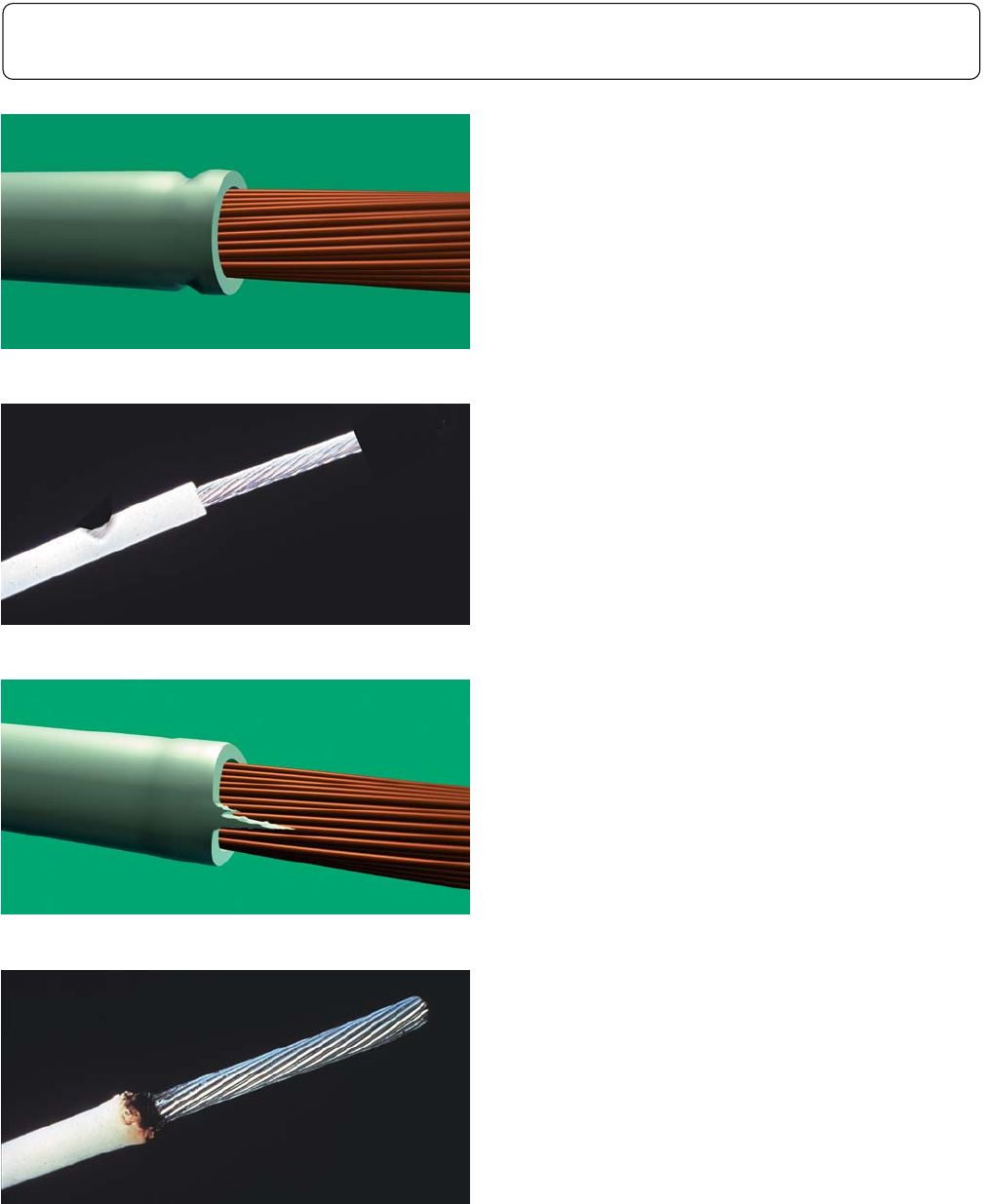 • 绝缘皮 参 差 不 齐 或 粗 糙(磨 损、拖 尾、以