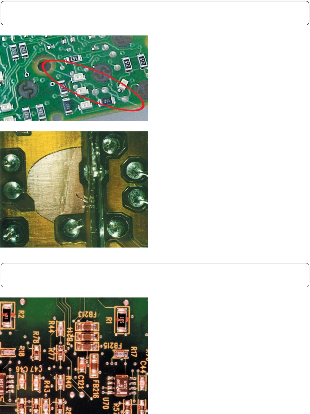 • 涂覆层的起泡/划痕/空洞使焊料桥接。