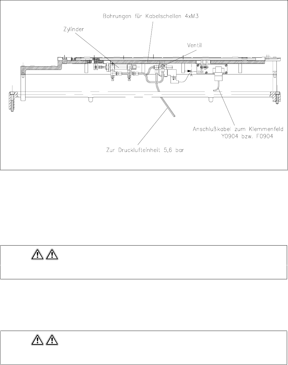 • Befestigen Sie mit den Kabelschellen das Anschlußkabel und die Pneumatikleitung am