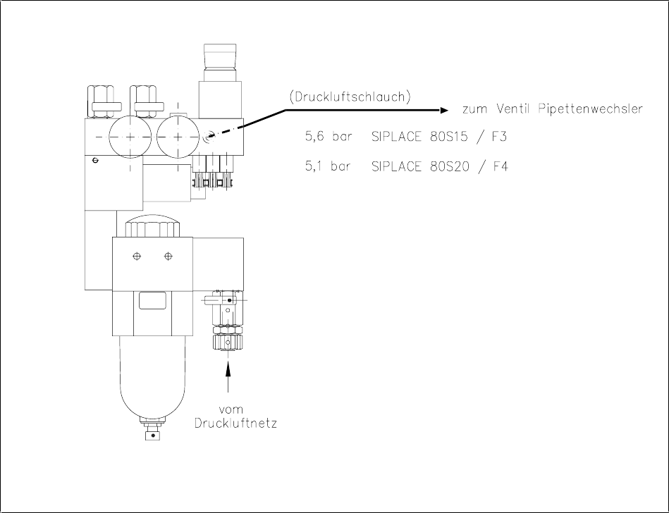 Drucklufteinheit (Siplace 80S15/F3 ⇒ 5,6 bar; Siplace 80S20/F4 ⇒ 5,1 bar).