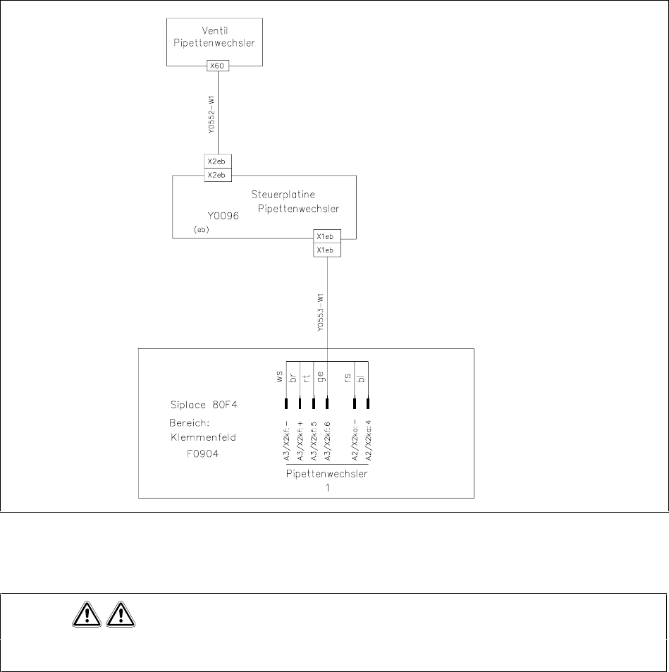 • Schließen Sie das Anschluß Y0553-W1 bzw. Y0553-W2 vom Pipettenwechsler gemäß nachfolgenden
