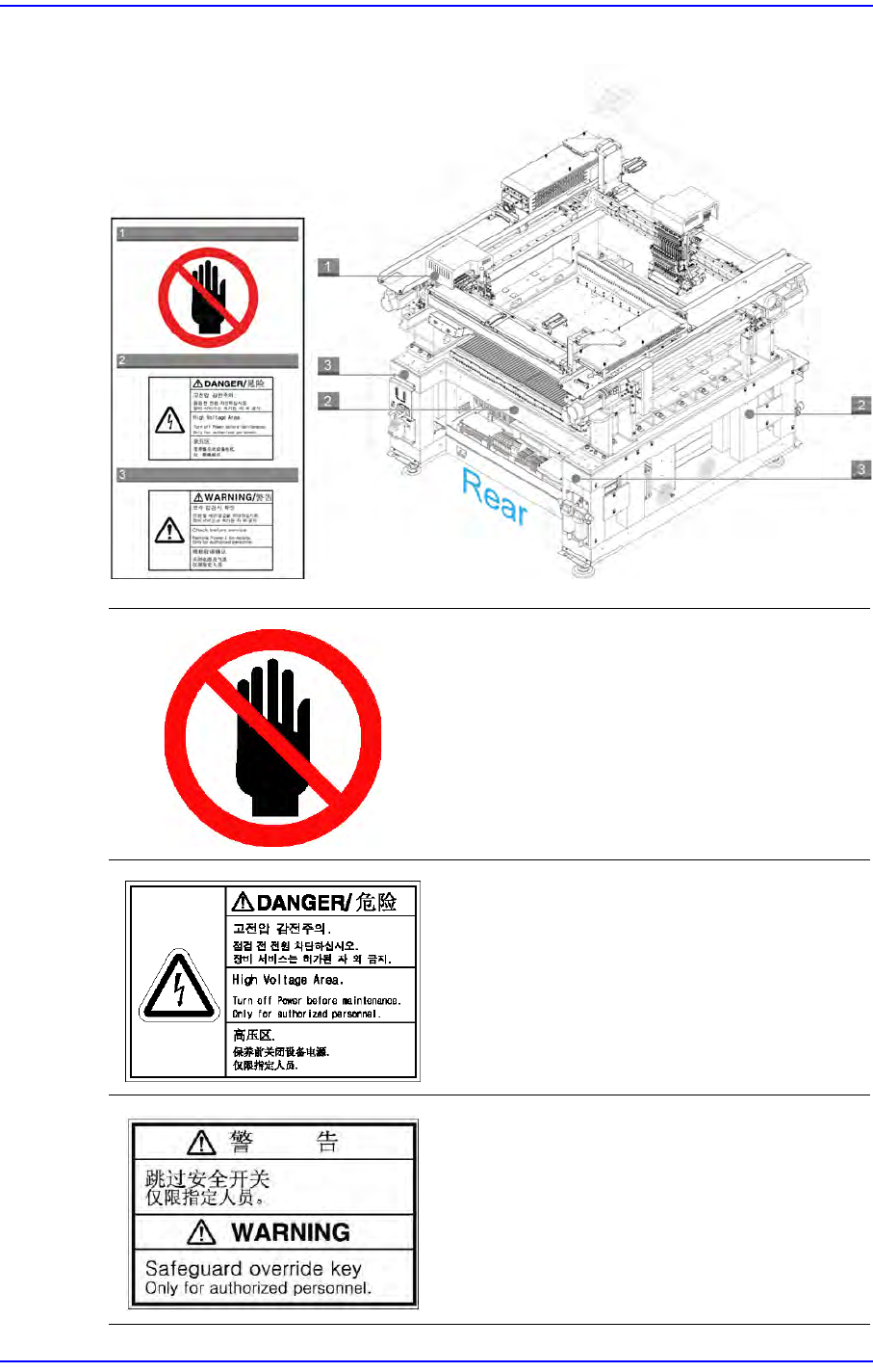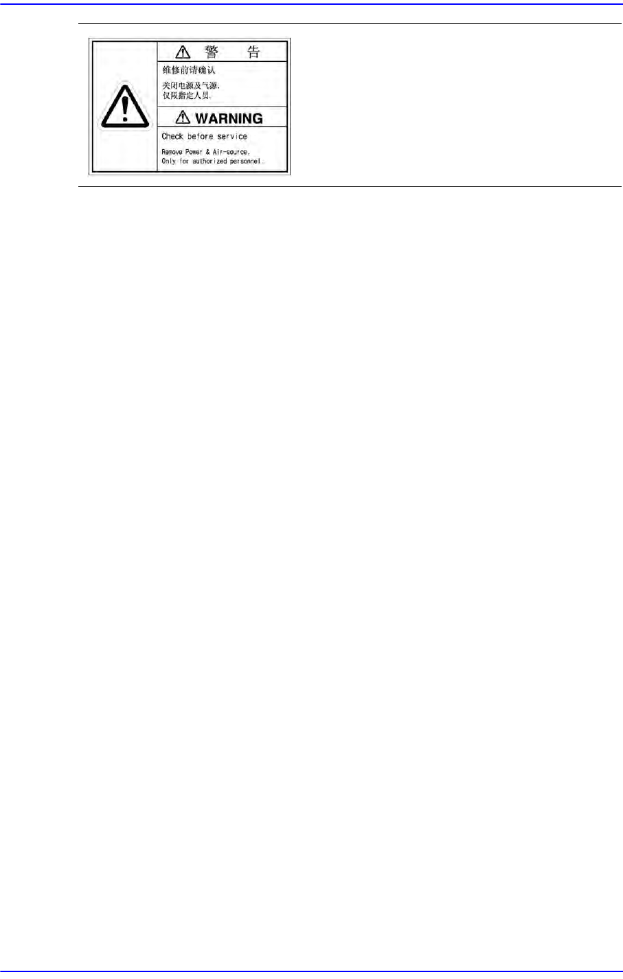 前言 vii 图 i.4 贴附在设备背面内部的安全 标签 请不要触摸 Head 部。 注意触电 (禁 止接近) 可能受到致命伤害, 请务必在维修前切断主 电源开关, 可能有残留的电流请注意。 不要删除安全功能。 否则可能会发生人命损 失或严重问题。