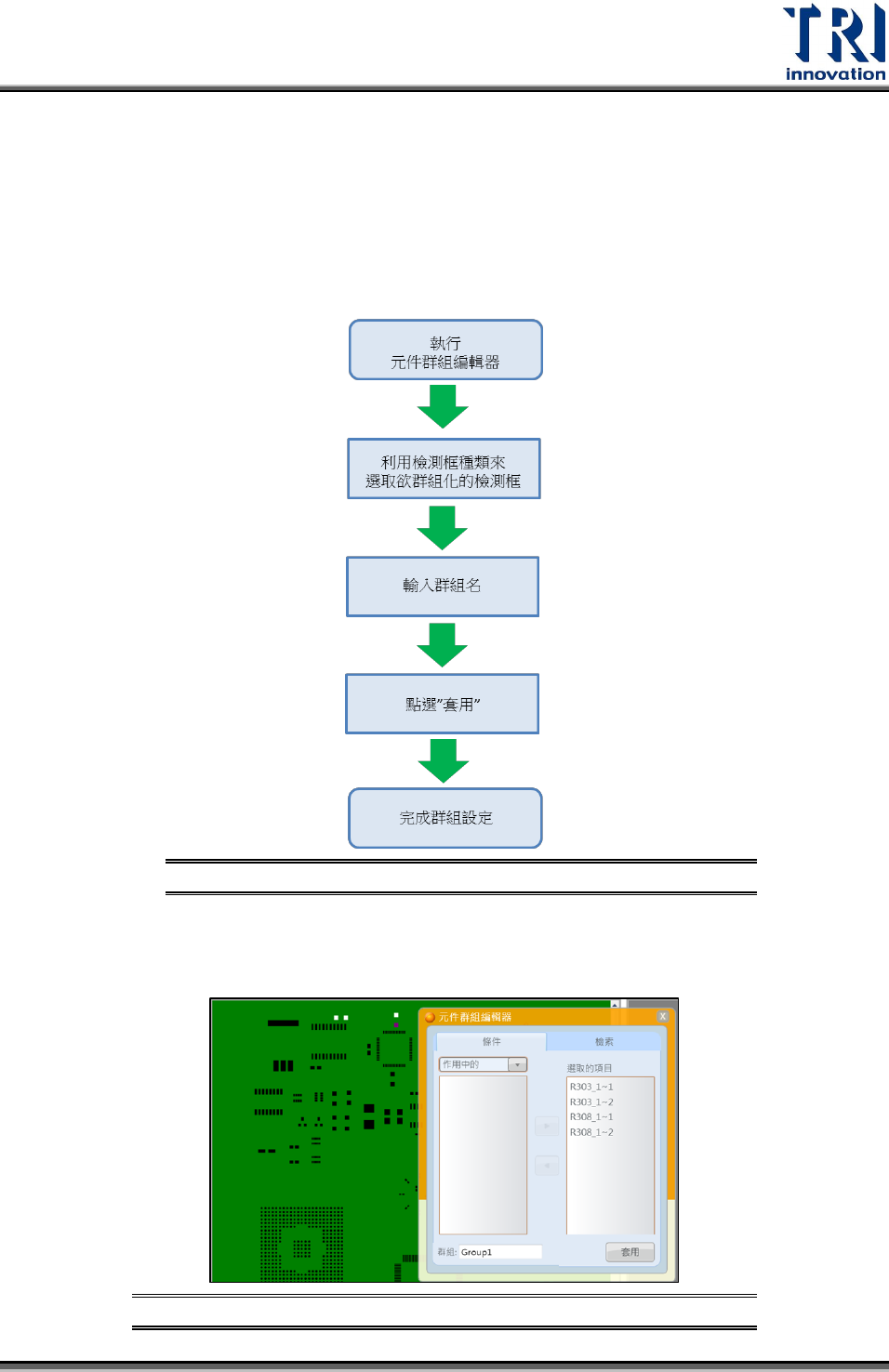 條件分頁:可按照檢測框當前情況選取後設定為群組,確認後點選套用。以下以作用