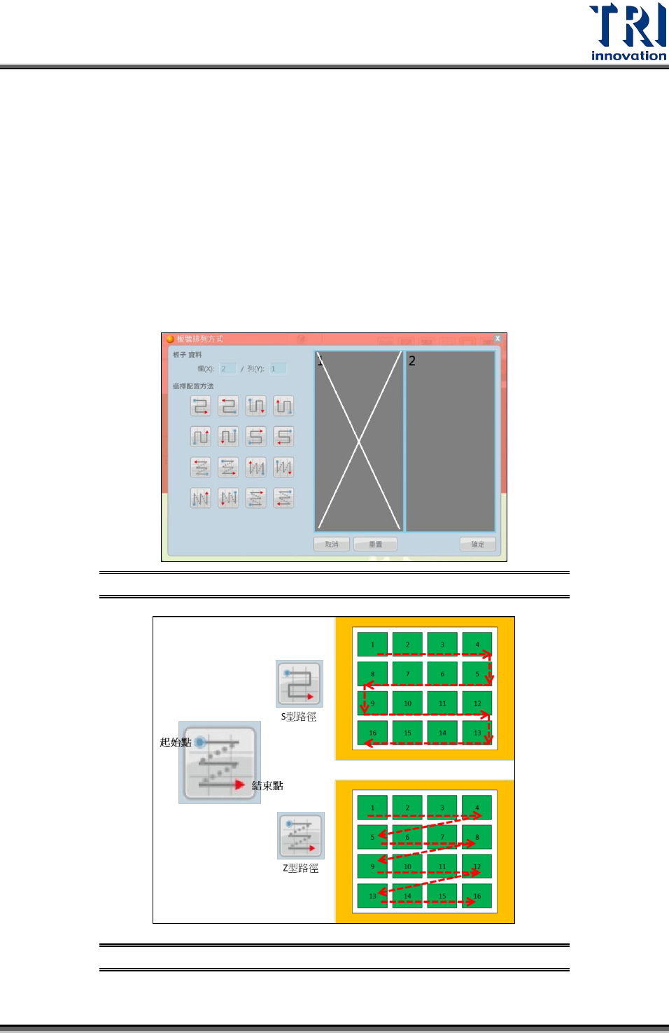 選擇配置方式:選擇多聯板板號排列方式。分為兩種路徑:S 型路徑與 Z 型路徑的排