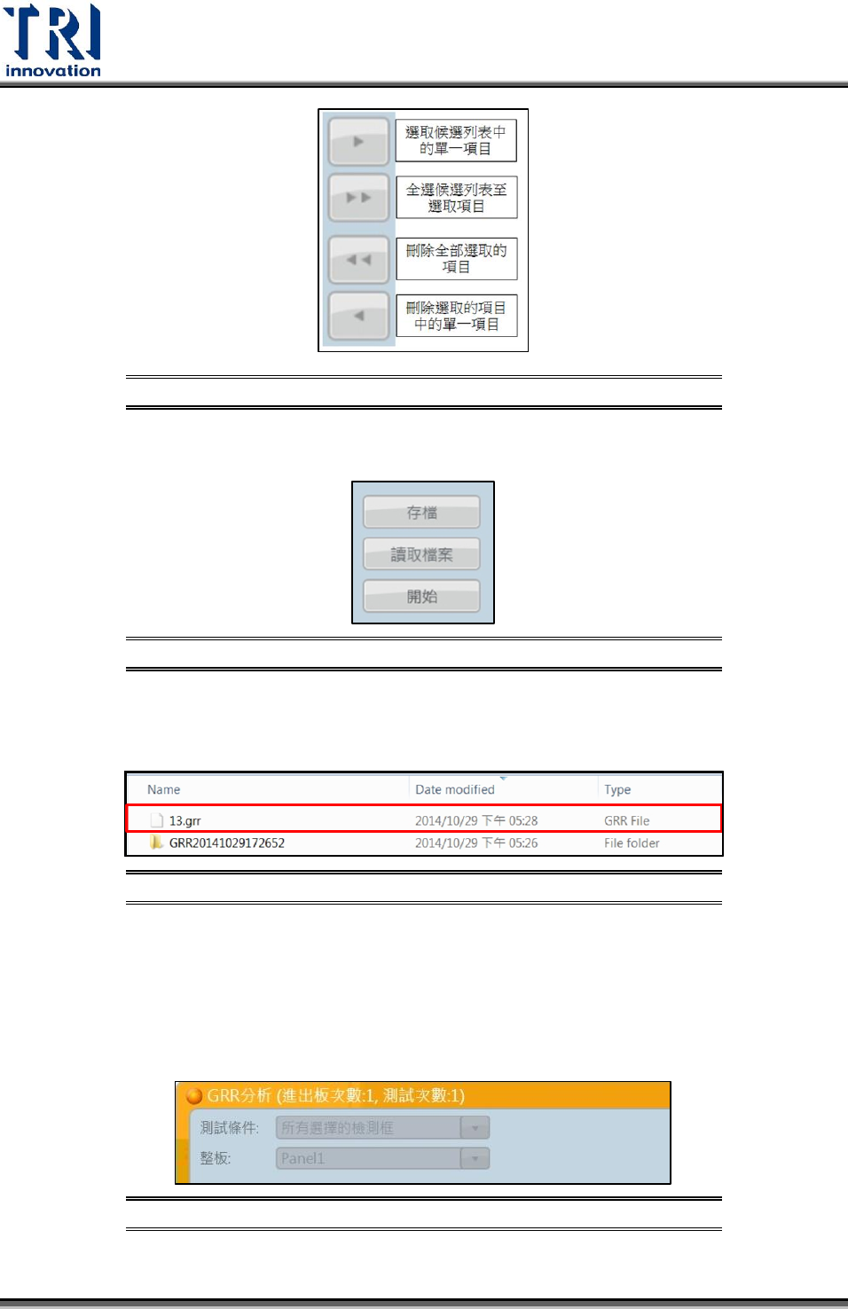 讀取檔案:當使用者下次欲測試相同受測板時,可直接讀取已存的 GRR 檔,