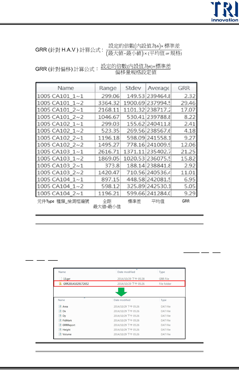 GRR 檢測結果資料夾命名方式與儲存檔案示意圖 圖286