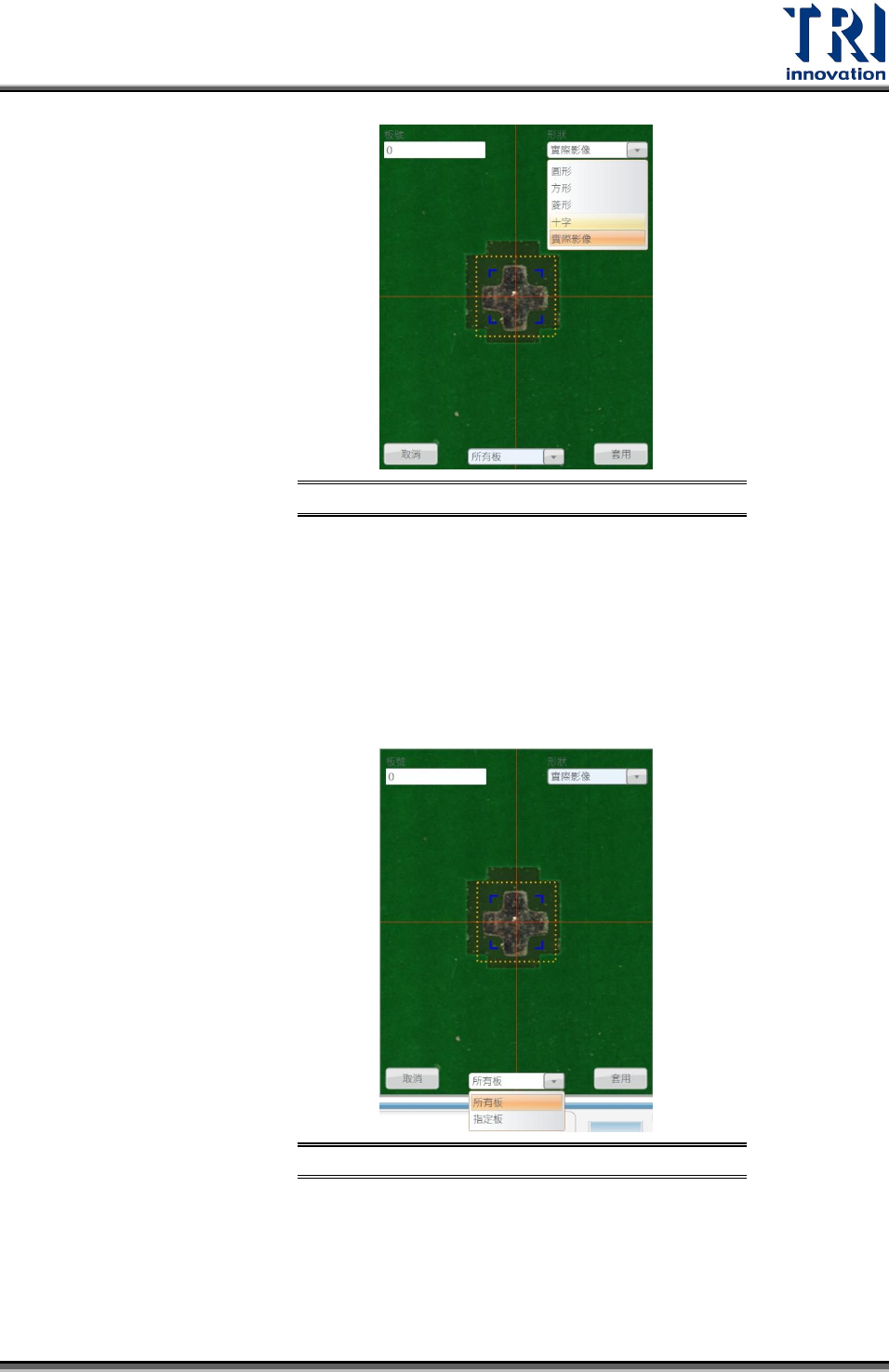 Test Research Inc. 32 TR 7007 User Guide -- So ftware 壞板標記 3.2 定義壞板的特徵點並設定判定為壞板的規格。當受測板判定為壞板時,軟 體將不對此受測板進行任何檢測。 設定壞板標記的方式: 步驟 1 於 FOV 影像下點滑鼠右鍵,選取 ” 新增壞板標記 ” 放大圖 下新增壞板 標記 圖 51 步驟 2 使用滑鼠調整黃色外框的尺寸與位置。 設定標 記的位置與 範圍 圖 52 步驟 3…