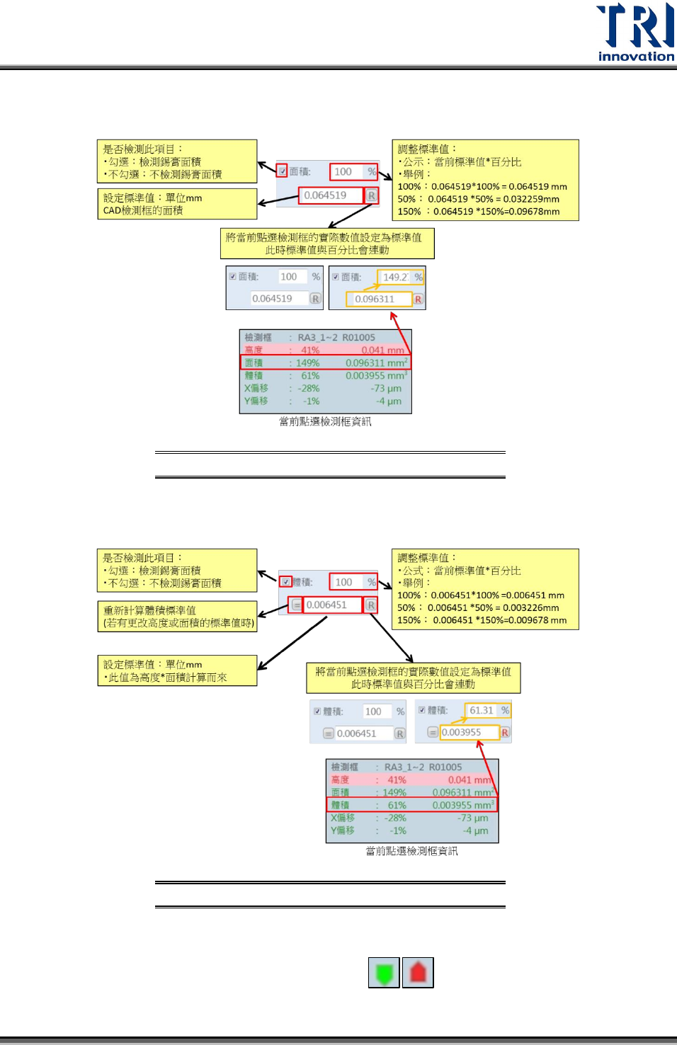 面積:各項目設定說明如下圖所示。使用者調整百分比或標準值的結果會連