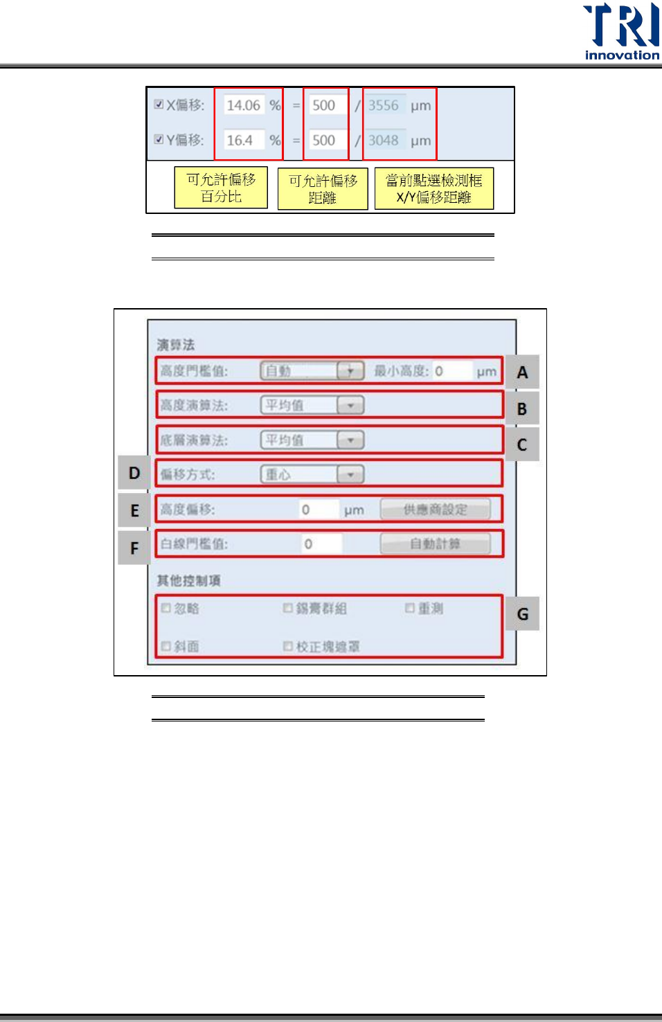 C. 偏移量:分別設定可允許偏移的百分比或距離,這兩個項目會連動。