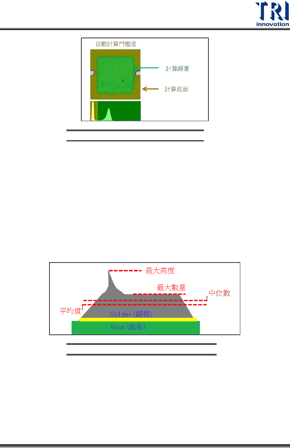 下四種演算法定義出錫膏區域的相對值: