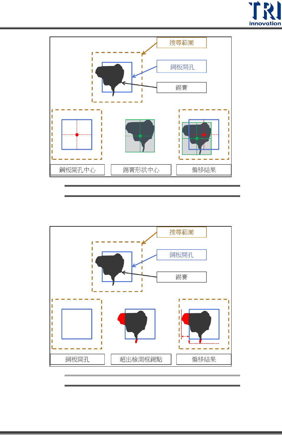 錫膏群組:將檢測框內面積最大的錫膏群組視為錫膏。因此一個檢測框