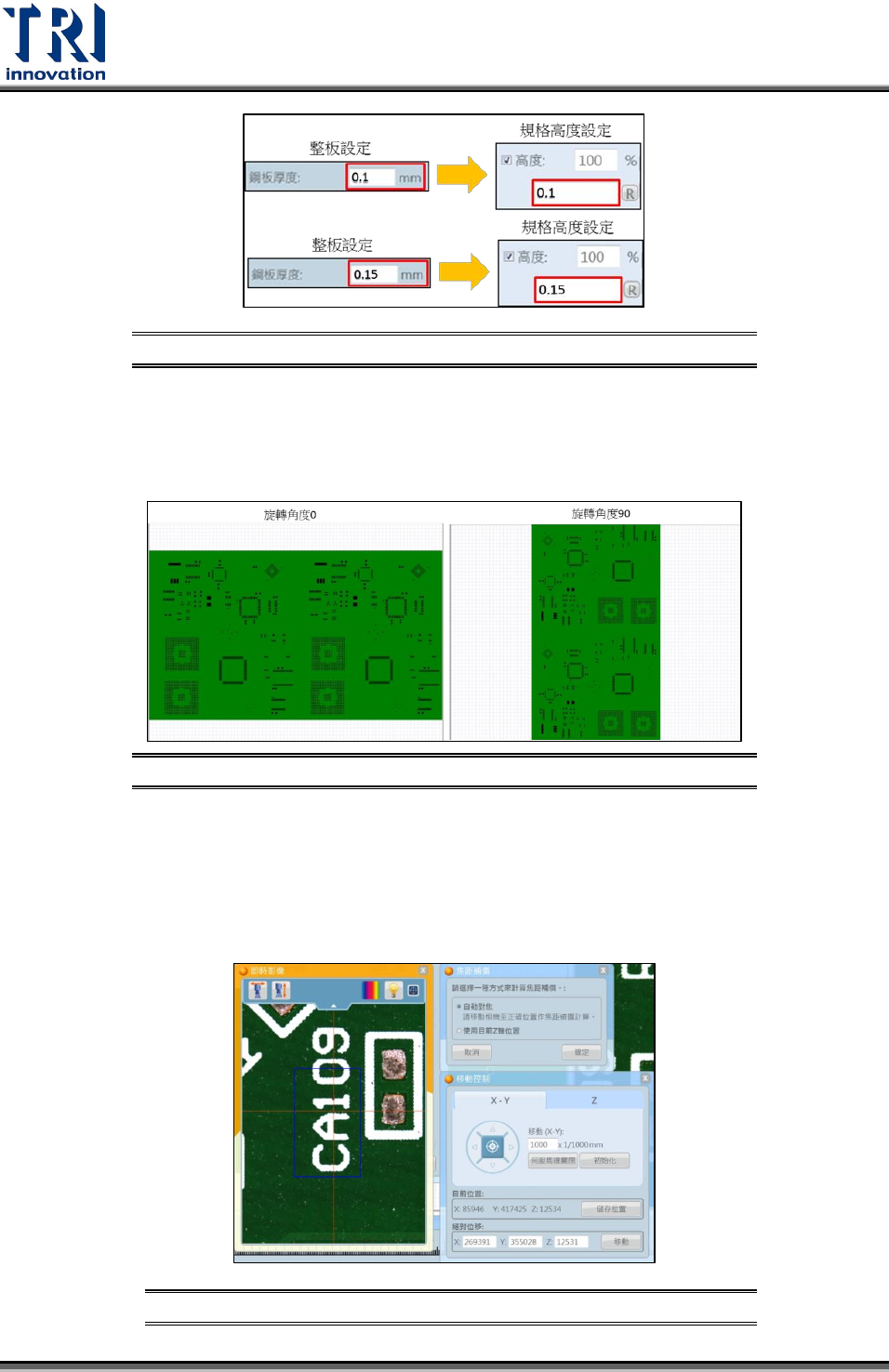 (預設正向為逆時針旋轉)。若待測板為長方形而 CAD 框旋轉角度為 90/270 時,
