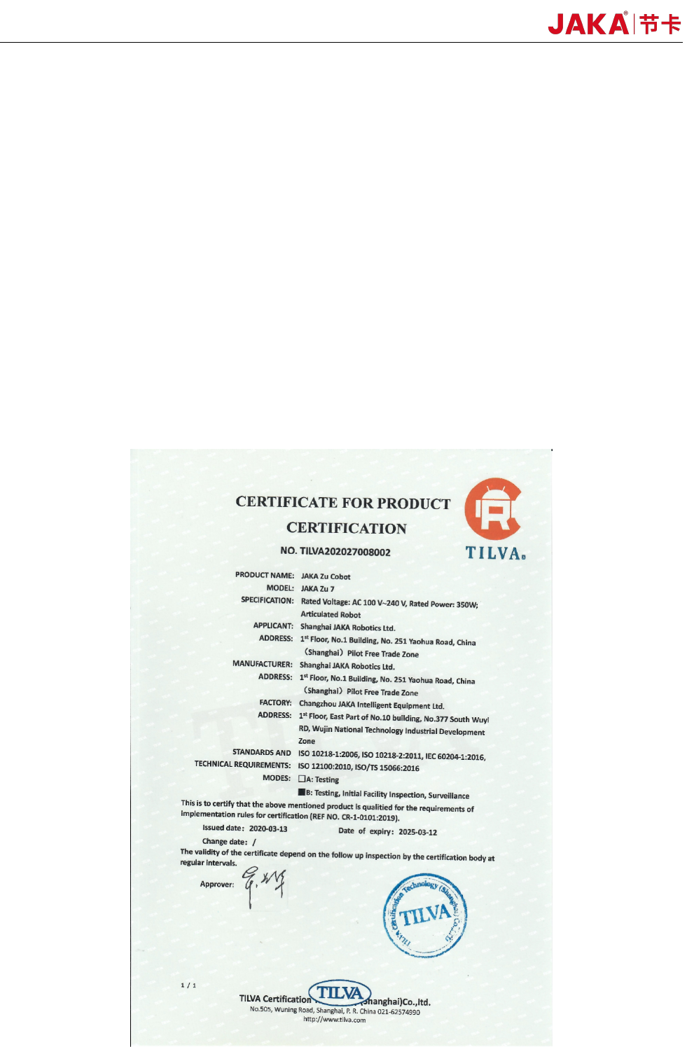 caused by JAKA's equipment, JAKA is responsible for providing the warranty and promptly repairing. If the fault