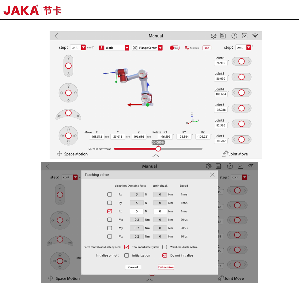 Figure 5. Settings of JAKA Zu Se Traction Teaching Function