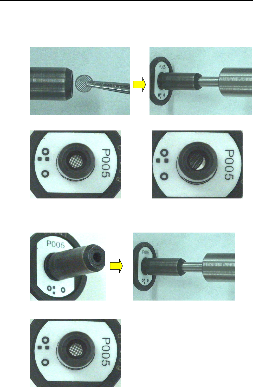 Insert the filter with tweezers and adjust the position of the filter using the O-ring insertion jig.