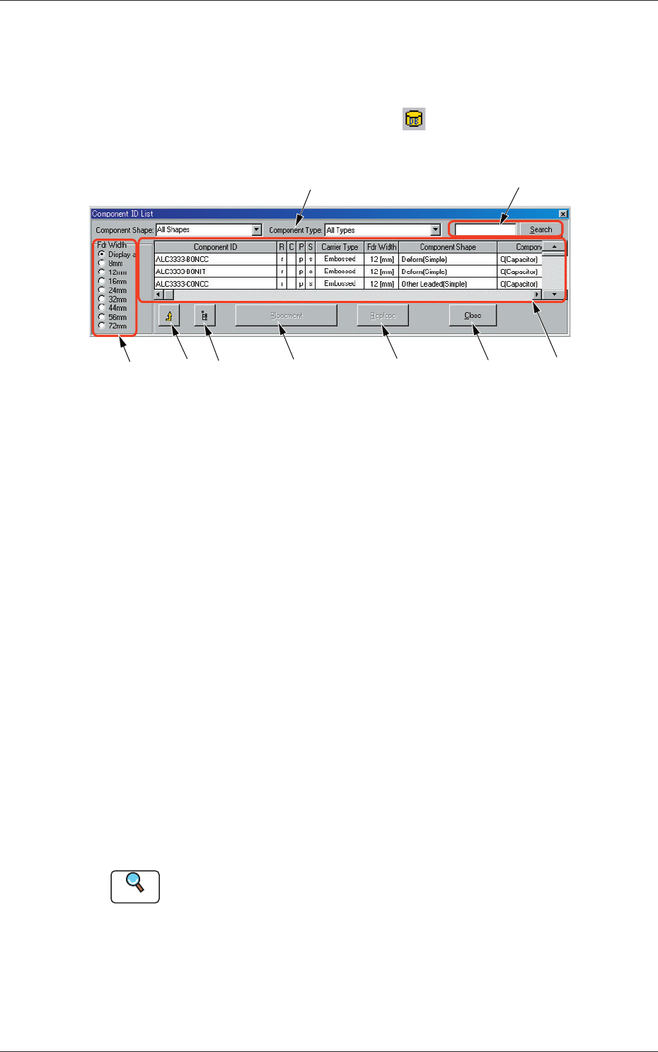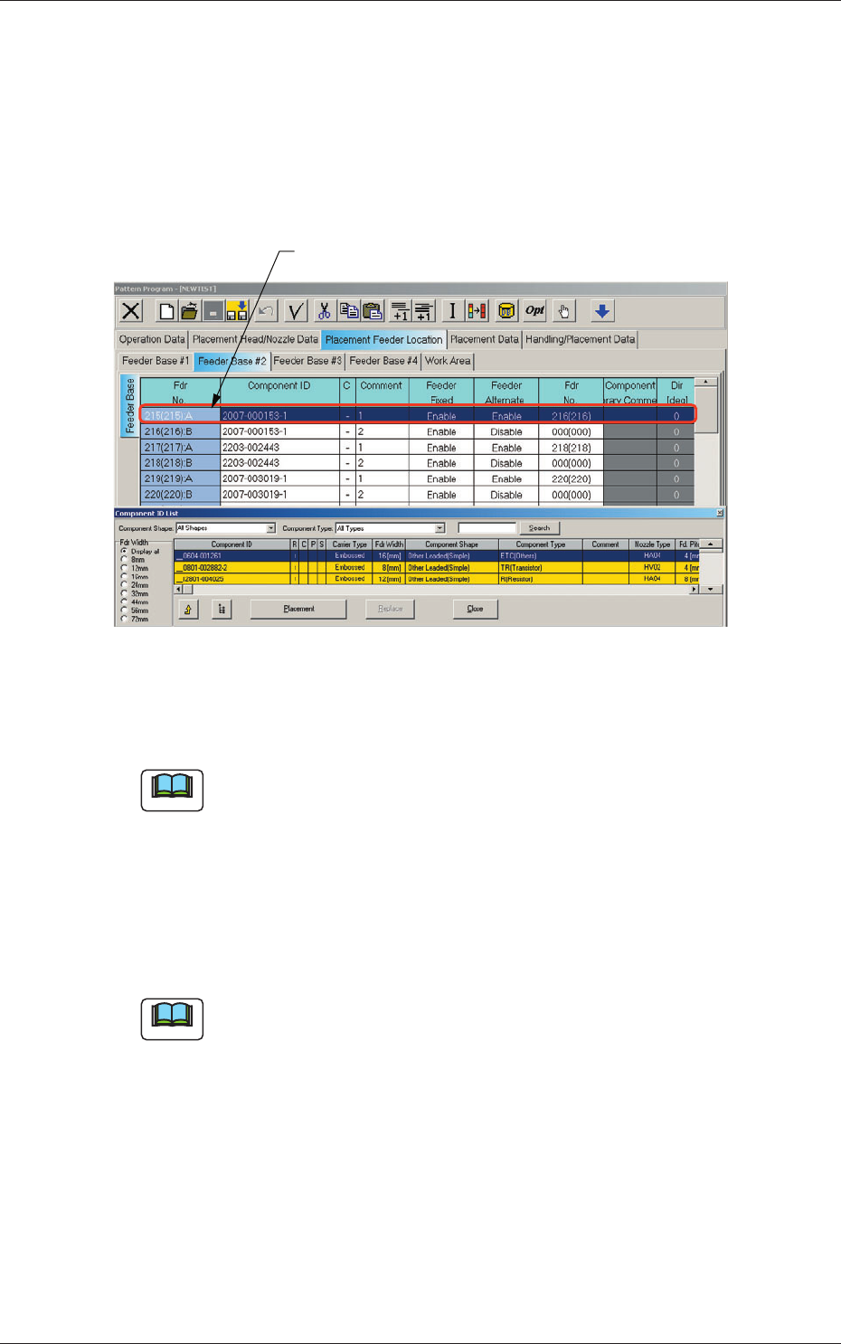 (2) Select the feeder No. (Fdr No.) where a component ID should be