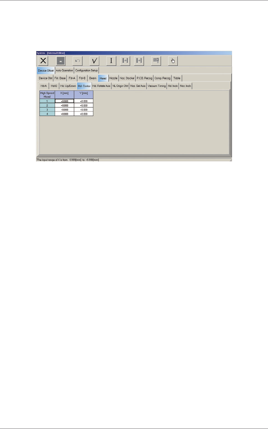 6-24 AKFEDT -ID Head 1, Head 2, Head 3, and Head 4 X (Horizontal), Y (V ertical) [mm] The set parameters are used to adjust the deviations in the design value between the head rotational center and the center of the PEC …