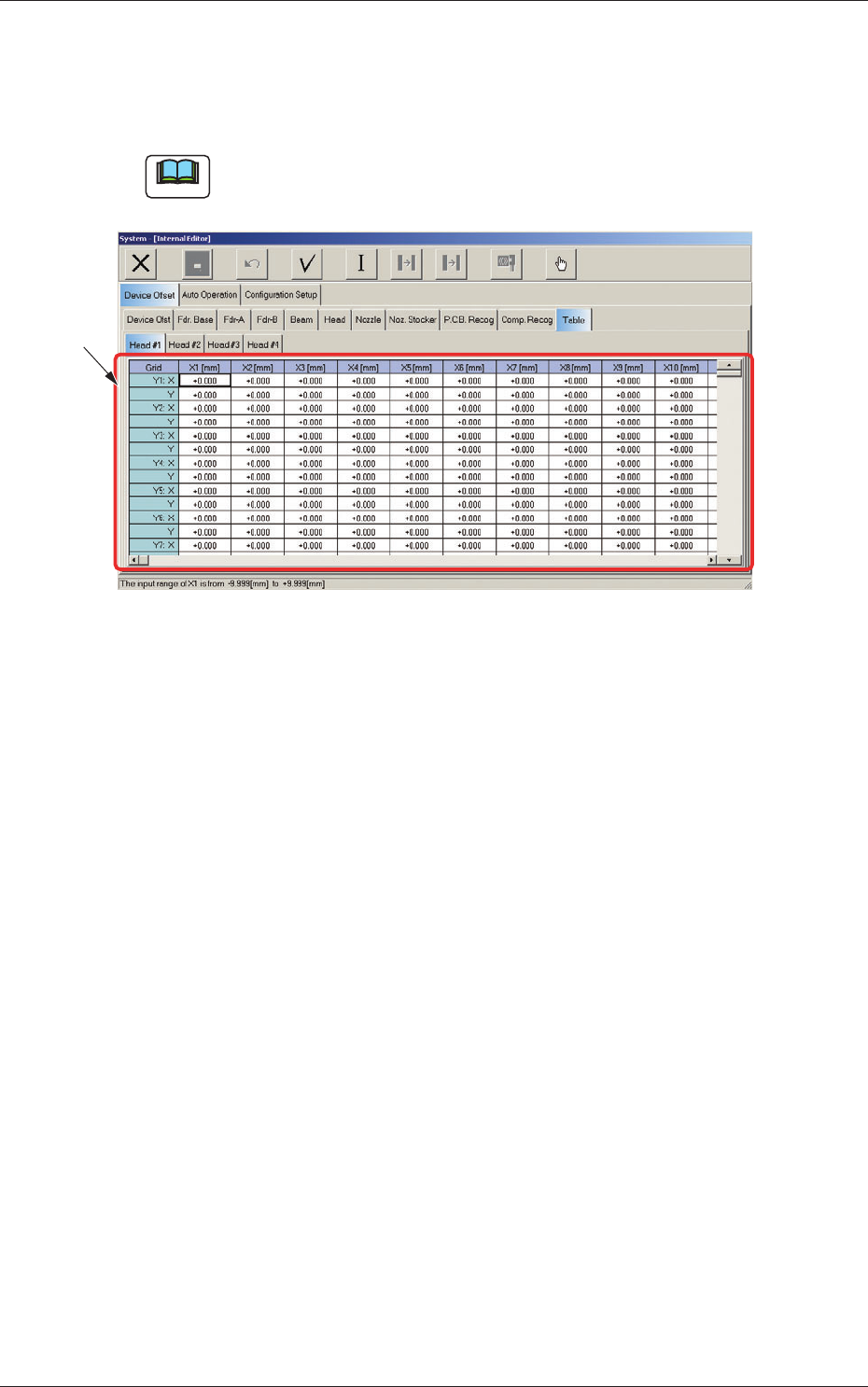 When the "Table" tab is pressed in the "Device Offset" tab sheet and the
