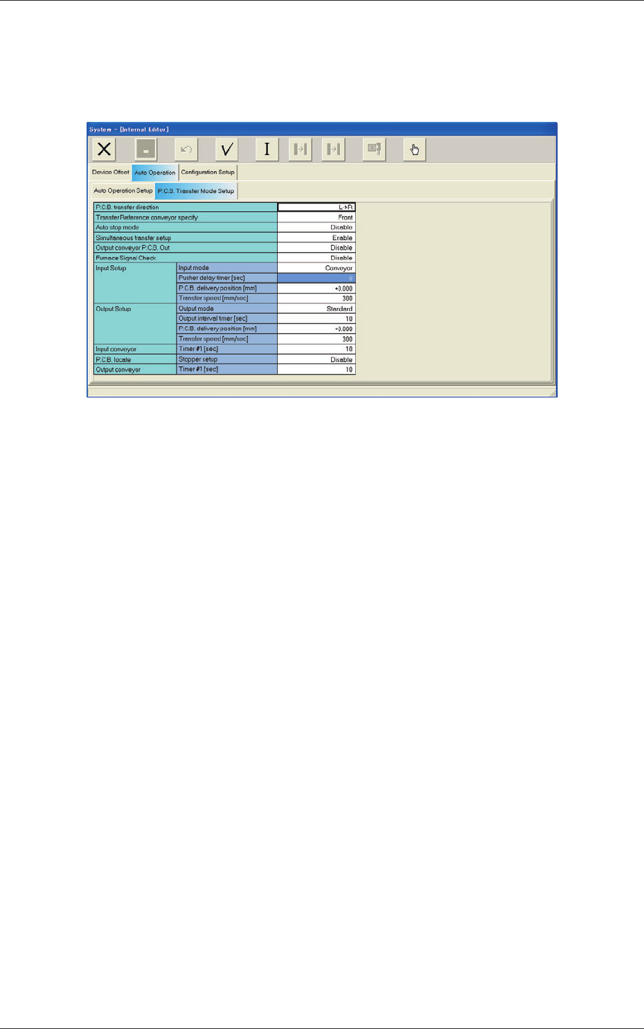 When the "PCB Transfer Mode Setup" tab is pressed in the "Auto Operation"
