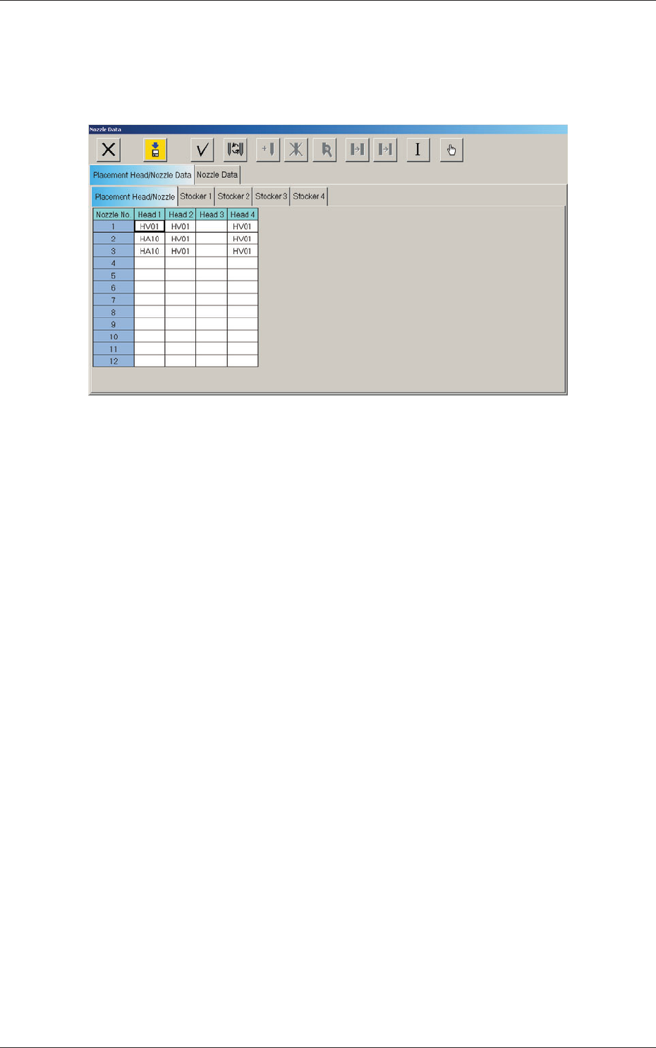 When the "Placement Head/Nozzle Data" tab is pressed in the "Nozzle Data"