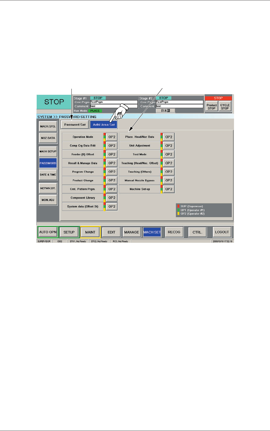 When the [PASSWORD] button on the "MACH SET" menu bar is pressed,