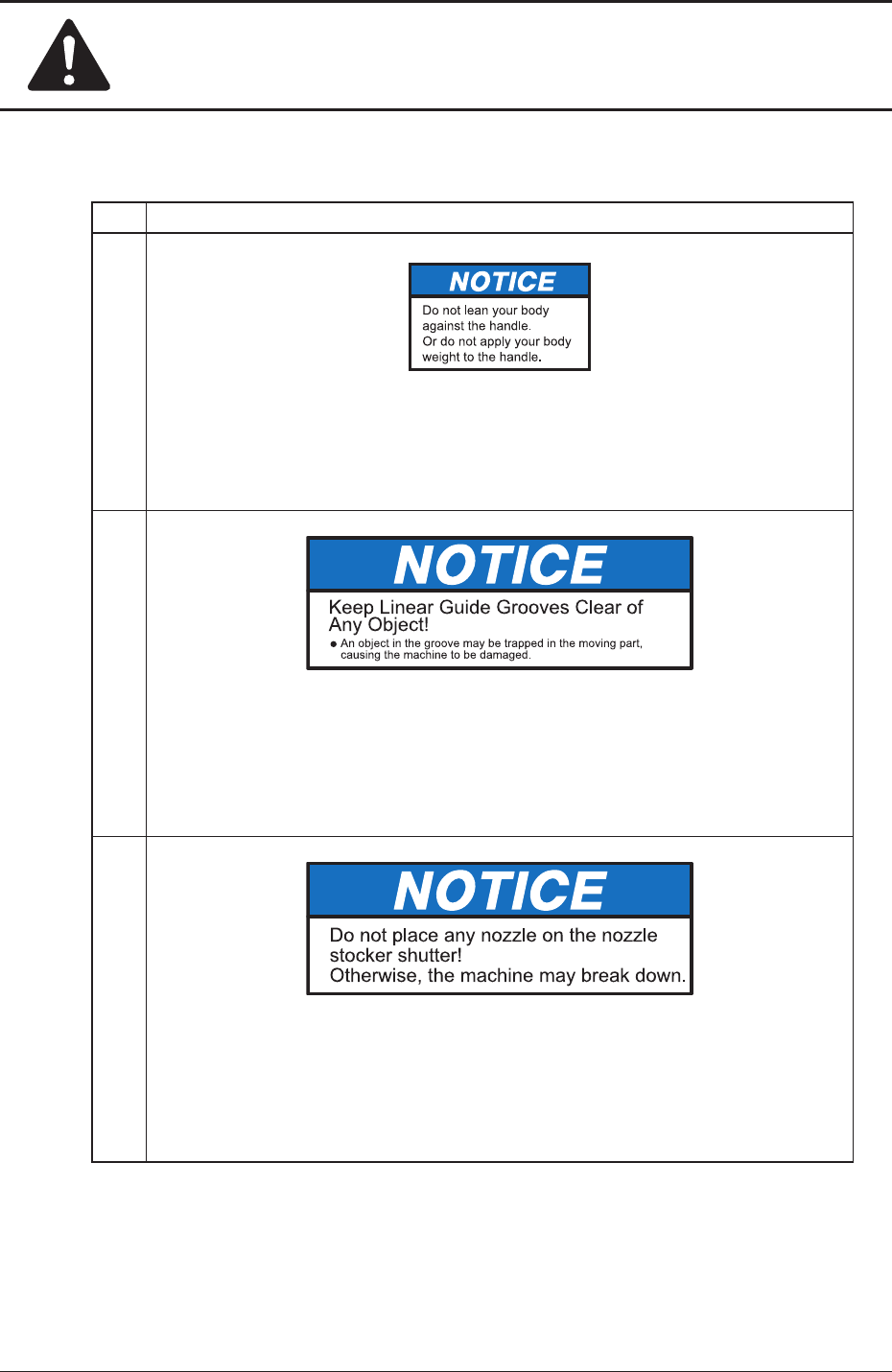 Keep the linear guide grooves clear of any object. Otherwise, an object in