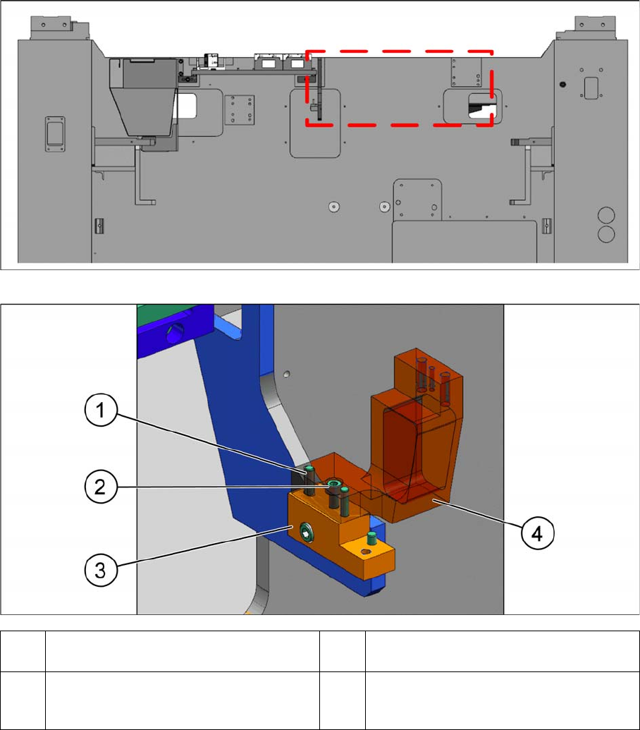► Place the mounting block (4) onto the 2 dowel pins (1) of the ETD, NC mounting left TWIN cpl. (3).