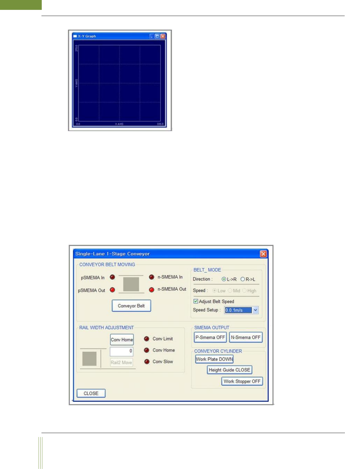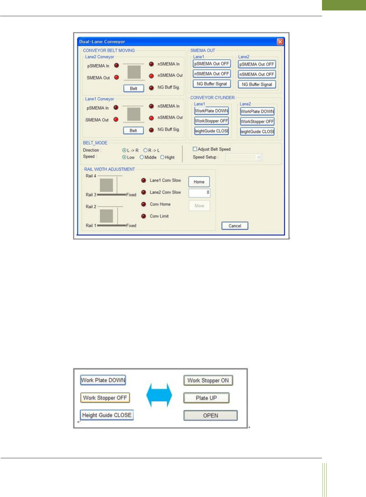 It shows Previous & Next SMEMA input/output signal. When Conveyor Belt button is