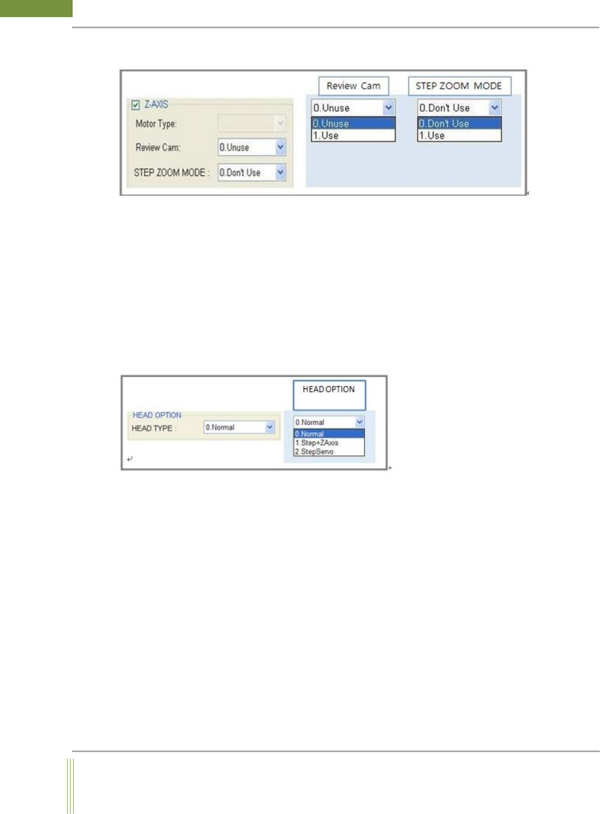 1. Step + Z Axis: Select Step+Z Axis, if both StepZoom motor and normal servo motor are