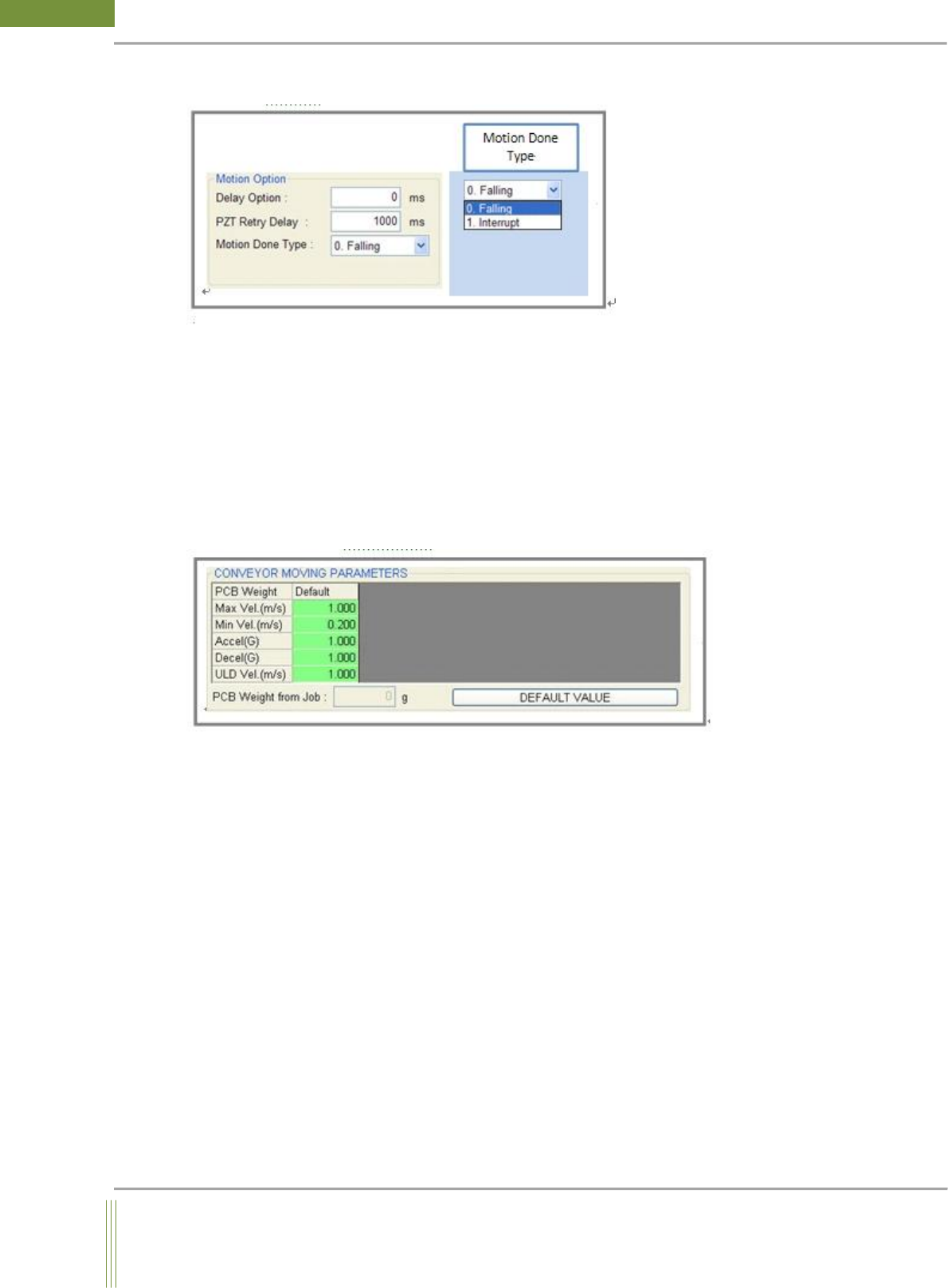 Conveyor Moving Parameter (Available from STMC Firmware)