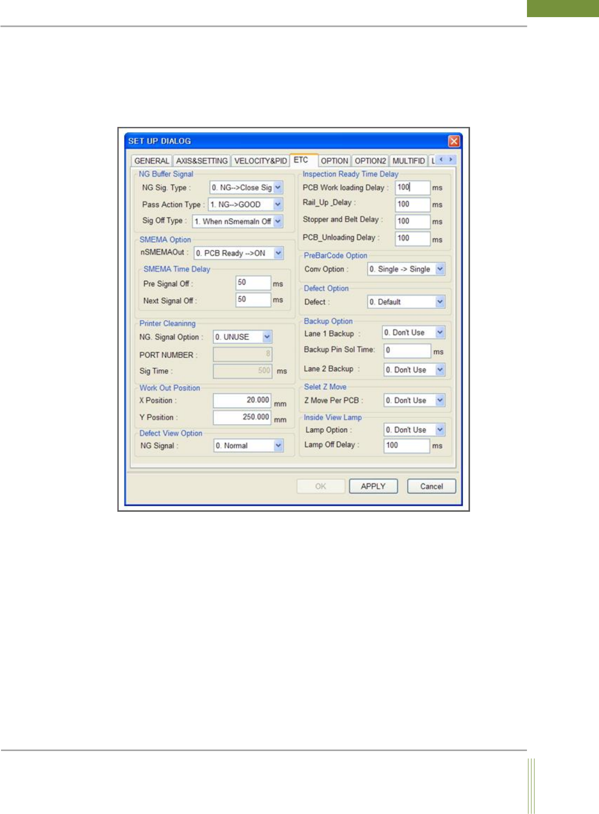 36 WinMCS_Manua l(ENG) rev 1.0 Koh Y oung T echnology Inc. 4.4. ETC SETTIN G It is setting f or the various ex ceptional cas es. Location: Menu Settings Syst e mSettings ETC 4.4.1. ETC SETTING