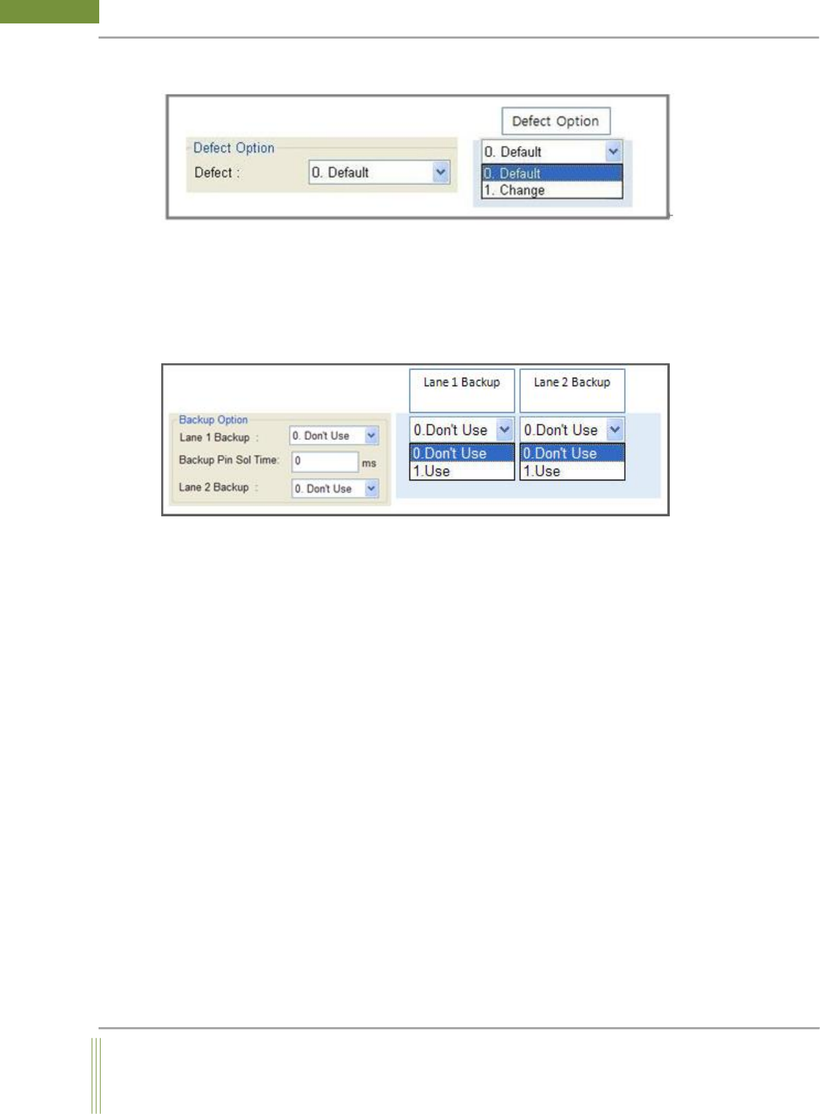 Input Backup Pin Sol Up/Down delay time (Default: 0ms)