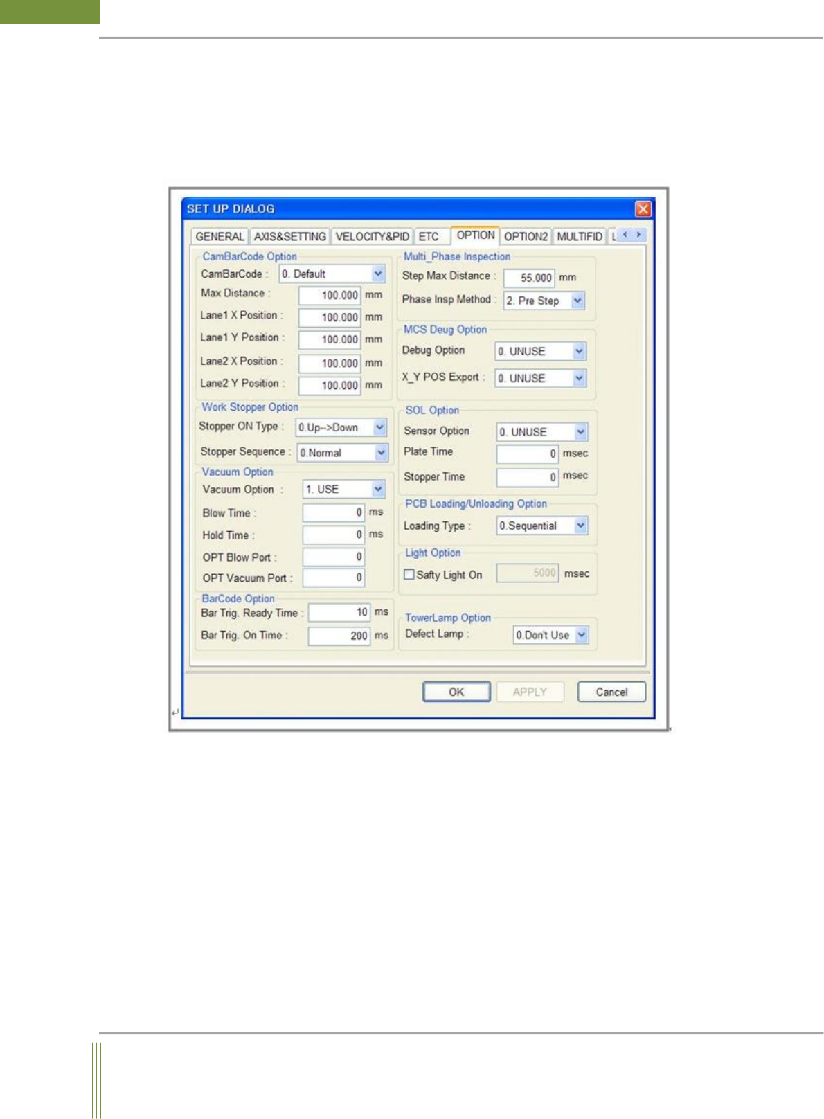 45 Service Manual Koh Y oung T echnology Inc. 4.5. OPTION SETTIN G It is setting fo r the optional items. Location: Menu Settings Syste mSettings OPTION 4.5.1. OPTION SETTING