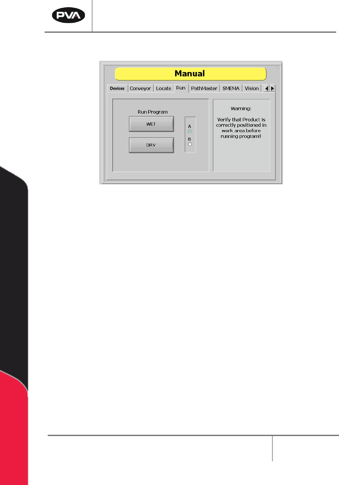 2. Select the “A” or “B” radio button to select which side will run. Select the “A” radio