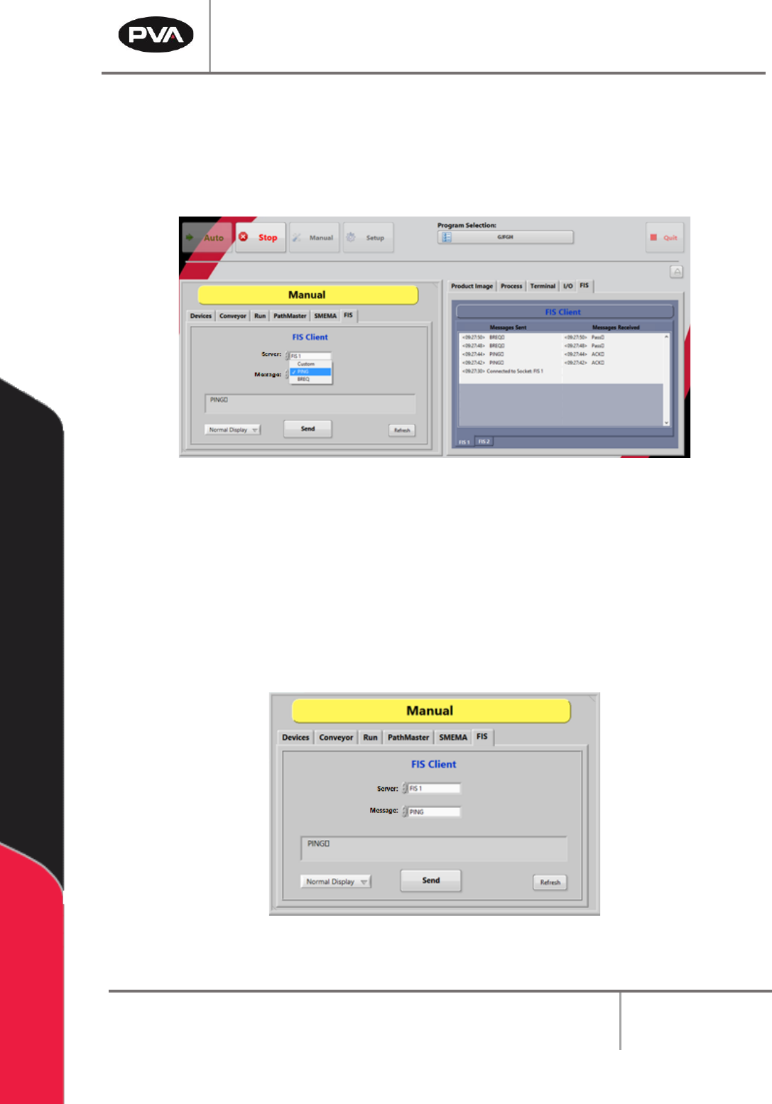 PVA Portal Manual Revision I / Janua ry 2022 Page 36 of 106 3. Select the Server drop down menu to select the server for which to se nd a message. The s erver list is specific t o each wo rkcell. 4. Select th e message t…
