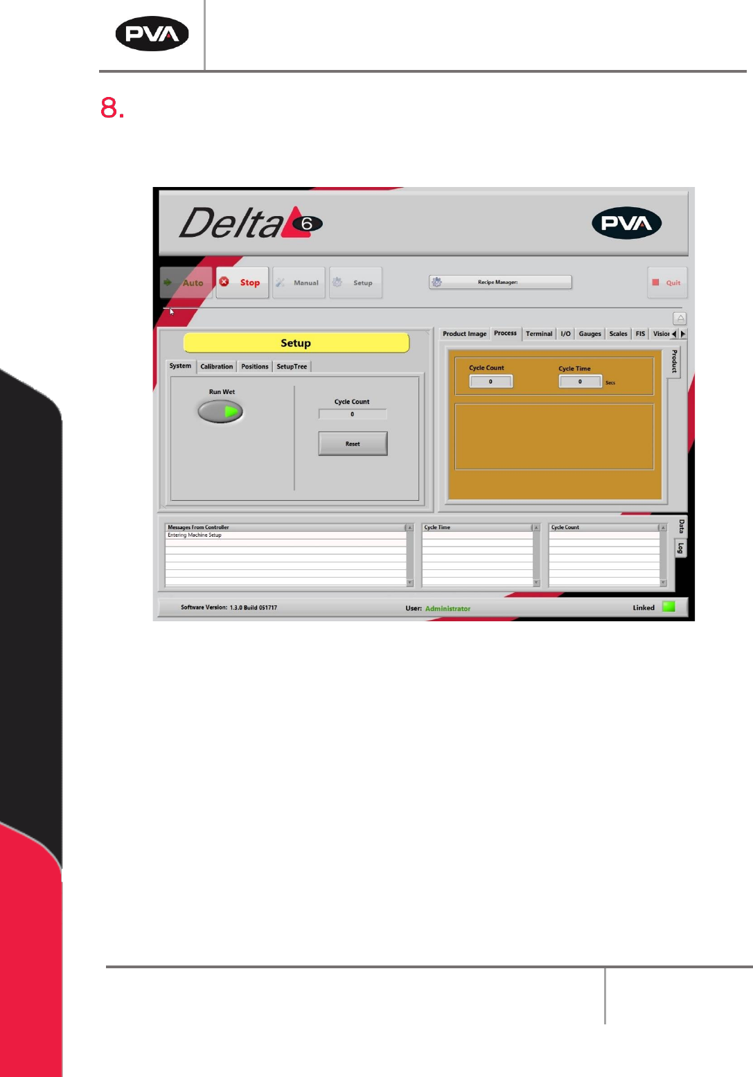 In Setup mode, basic workcell functions can be controlled. Auto Cycle parameters and